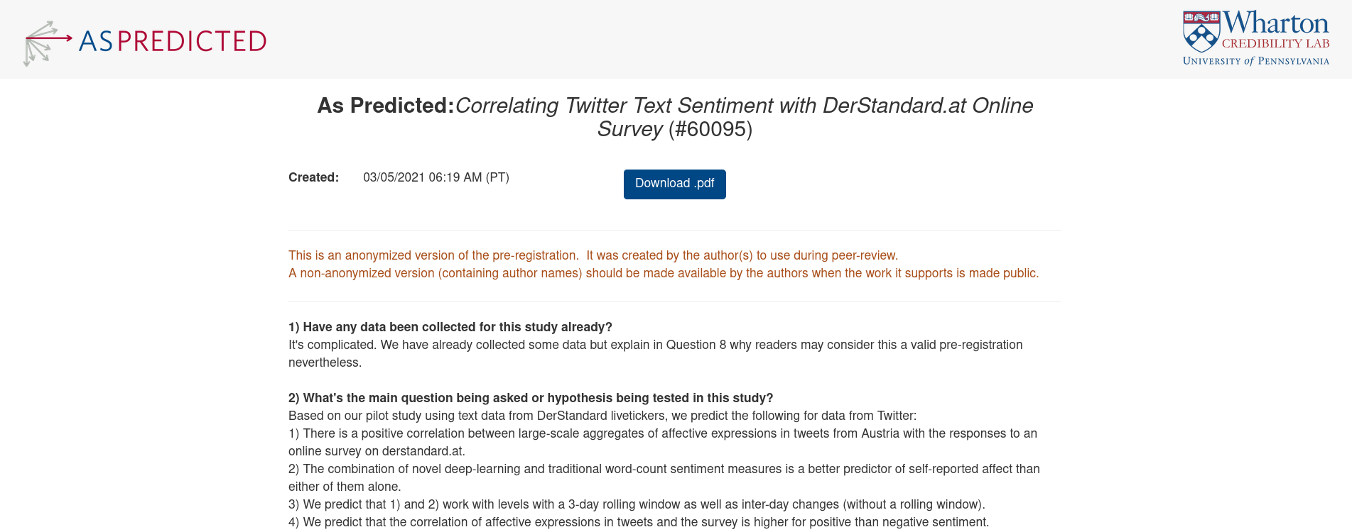 Pre-registered the same study with Twitter data